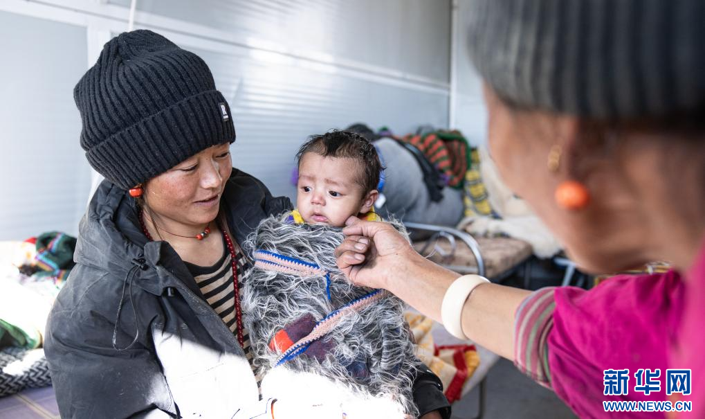 1月8日,在長所鄉(xiāng)森嘎村臨時(shí)安置點(diǎn),西藏軍區(qū)總醫(yī)院醫(yī)療隊(duì)隊(duì)員為小朋友治療。 新華社記者 丁汀 攝