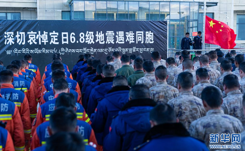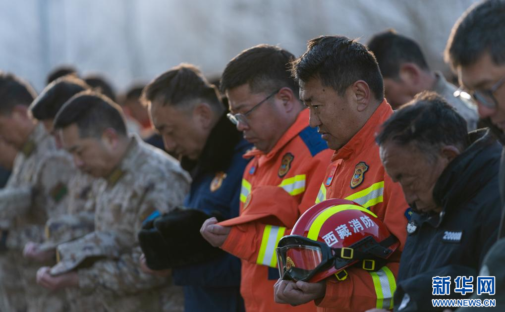 1月13日上午9時(shí)30分,西藏定日6.8級(jí)地震遇難同胞悼念儀式在受災(zāi)最嚴(yán)重的長所鄉(xiāng)舉行。參與救援的解放軍和武警官兵、消防救援人員、公安民警、醫(yī)護(hù)人員、青年志愿者及有關(guān)企業(yè)員工、干部職工、震區(qū)群眾代表數(shù)百人,脫帽肅立,向遇難同胞默哀3分鐘。 新華社記者 丁增尼達(dá) 攝