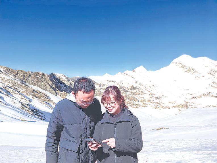 春節(jié)將至,中國移動運維工程師陳湘萍和白瑪?shù)┣谇巴鞑啬乔芯瘎?wù)工作點進行量子密訊維護的路上。正值寒冬臘月,在平均海拔超過4500米的西藏地區(qū),空氣稀薄、冰天雪地、呵氣成冰。他們“全副武裝”,全身包裹得只露出眼睛。一人提著檢測設(shè)備,另一人提著熱水壺,深一腳淺一腳地向工作點走去。