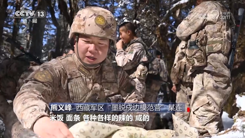 西藏軍區(qū)“墨脫戍邊模范營”某連熊義峰:“我們現(xiàn)在單兵自熱食品品種非常豐富,米飯、面條,各種各樣的,辣的、咸的,能夠滿足廣大官兵的口味需求。然后它的操作也非常簡單,就是加點(diǎn)水,操作非常便捷,熟得也很快,第三個(gè),它這個(gè)熱量提供非常充足。因?yàn)槲覀冊谘策壜飞弦?jīng)常爬山,體力消耗很大,所以需要快速補(bǔ)充能量。”