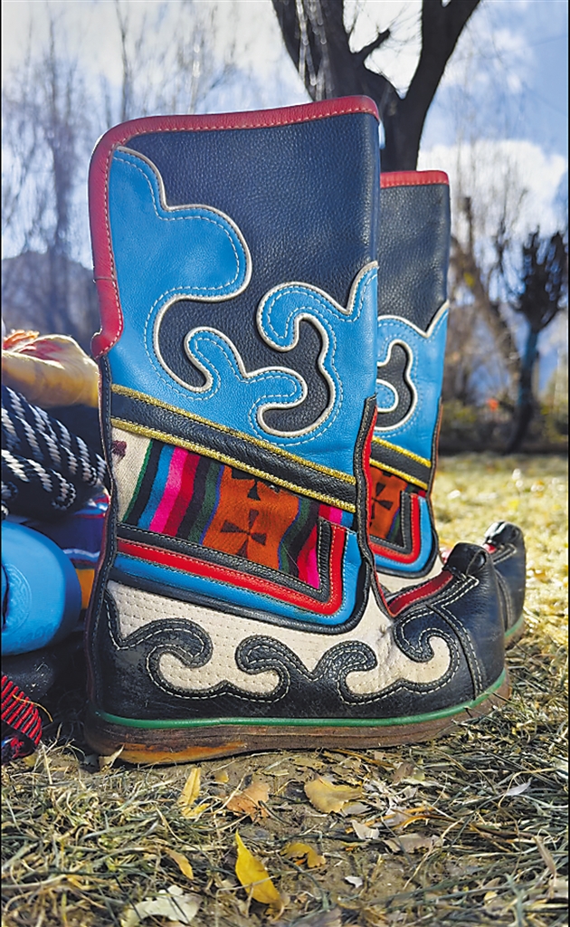 堆龍德慶區(qū)覺木隆派藏戲演員表演時(shí)穿的藏靴。(圖片均由拉薩市文化和旅游局提供)