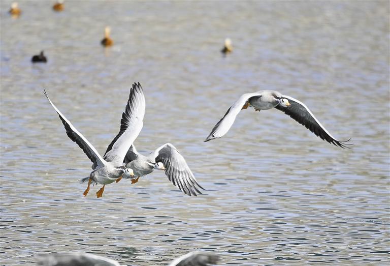 圖為在拉薩河上飛翔的候鳥(niǎo)。記者 唐斌 攝