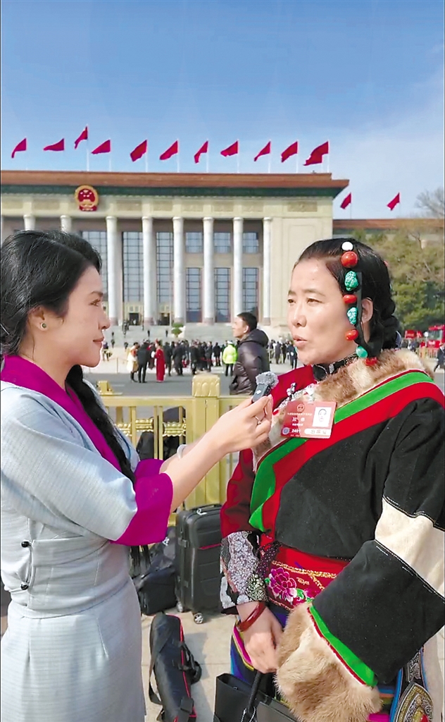 黨的光輝照邊疆,邊疆人民心向黨?!?024年,我們縣迎來兩件大喜事,一是縣人民醫(yī)院新院址投入使用,院區(qū)整潔、漂亮,醫(yī)院技術(shù)裝備也更新升級,進一步實現(xiàn)了家門口‘能看病’到‘看好病’的飛躍;二是縣第二中學竣工,現(xiàn)代化的新校舍進一步實現(xiàn)了‘辦好牧民家門口的優(yōu)質(zhì)學校的目標’。這次全國兩會上,我會把這些好消息分享給其他代表委員,讓他們知道在黨的堅強領(lǐng)導下,西藏確確實實富起來、好起來了。”其德激動地介紹說。