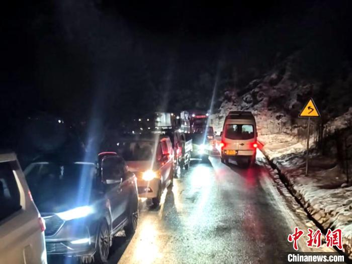 圖為滯留在積雪路段的車輛。馬軍 供圖