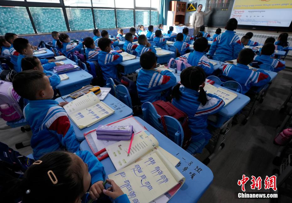 3月10日,拉薩市第一小學(xué)一年級(jí)八班學(xué)生們正在上藏語(yǔ)文課。當(dāng)日,西藏拉薩市春季學(xué)期開(kāi)學(xué),各項(xiàng)教學(xué)工作有序開(kāi)展。中新社記者 李林 攝