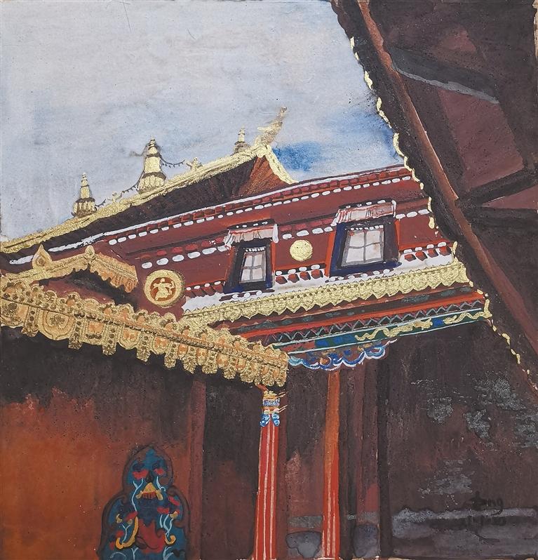 她畫筆下描繪的古城拉薩、朵朵白云、一草一木、民居建筑和人物形象都融入了對(duì)于藏文化的理解和對(duì)西藏美好生活的熱愛之情。她將這些景象都轉(zhuǎn)化為自己的藝術(shù)語言并賦予在了一層層傳統(tǒng)麻紙之上。在她的創(chuàng)作世界里,藝術(shù)是一場(chǎng)結(jié)合了研究的探索,是一場(chǎng)永不停歇的心靈對(duì)話,她希望一直能用自己的藝術(shù)語言堅(jiān)持傳統(tǒng)繪畫方式,不斷摹古繼新。