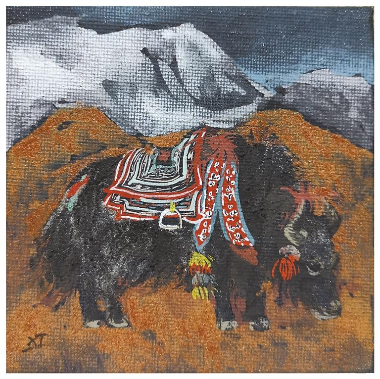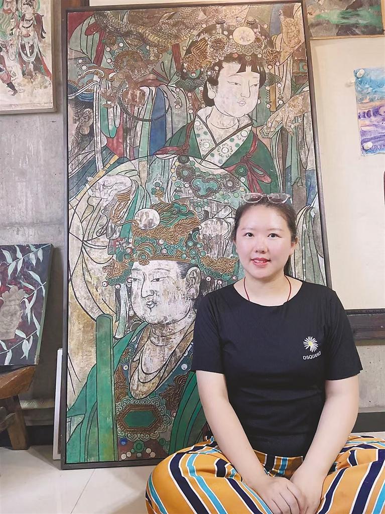 “我目前的研究及創(chuàng)作方向?yàn)榈V、植物綜合材料繪畫創(chuàng)作,是藏族藝術(shù)和熱愛的壁畫藝術(shù)賦予了我更多的人生價(jià)值,賦予了我積極向上的心態(tài)和面對(duì)困難的勇氣,我將繼續(xù)用手中的筆描繪和書寫西藏這片熱土優(yōu)美的畫卷?!眲酝畧?jiān)定地說。