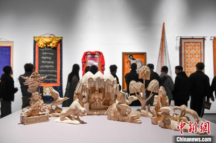 4月9日,“盛世禮贊·西藏工藝美術(shù)作品區(qū)內(nèi)巡展”在拉薩首展。此次展覽精心籌備,從西藏全區(qū)234位創(chuàng)作者送選的468件作品里,精心挑選出75位作者的100件代表作。展覽分為“精雕細(xì)琢·各美其美”“古韻丹青·美人之美”“多姿多彩·美美與共”三個(gè)板塊,借多種形式,全方位展示西藏自治區(qū)成立60年來(lái)傳統(tǒng)工藝美術(shù)行業(yè)的發(fā)展成就。圖為展覽現(xiàn)場(chǎng)。中新社記者 貢嘎來(lái)松 攝