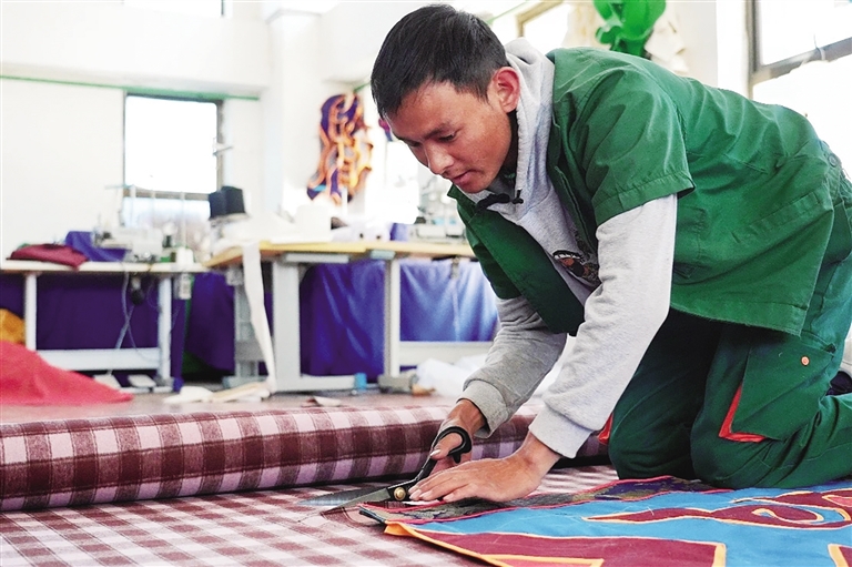 巴桑達(dá)瓦嫻熟地裁著布料。圖由山南融媒提供