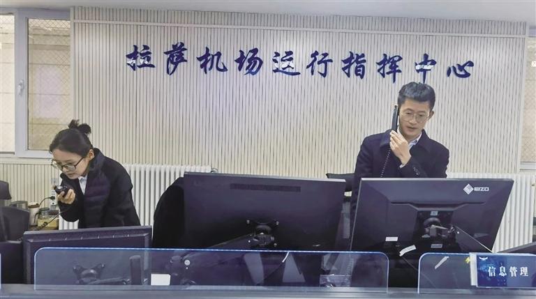 拉薩貢嘎國際機(jī)場運(yùn)行指揮中心緊急調(diào)度機(jī)位,保障旅客轉(zhuǎn)機(jī)。圖片由 張偉 提供