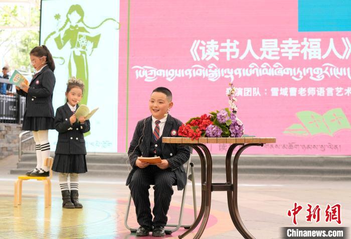 圖為4月19日,第二屆“拉薩春日書會(huì)”暨拉薩市全民閱讀推廣周系列活動(dòng)開幕式上情景朗誦。李林 攝
