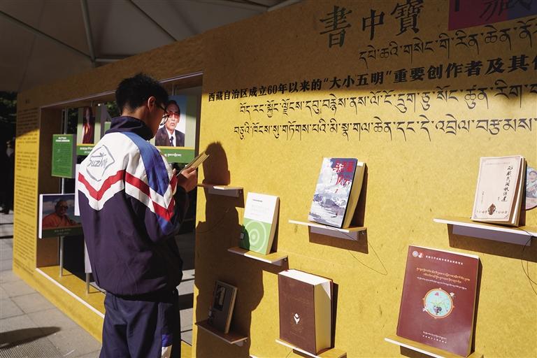今年的書(shū)會(huì)展覽別具一格。在宗角祿康公園舉辦的“書(shū)中寶‘藏’——西藏自治區(qū)成立60年以來(lái)的重要作家與其著作”展覽,通過(guò)圖文、實(shí)物與互動(dòng)相結(jié)合的創(chuàng)新方式,帶領(lǐng)觀眾回顧歷史,深入探尋西藏文化的深厚底蘊(yùn)。從歷史文脈到當(dāng)代審美,展覽呈現(xiàn)雙重維度——既追溯歷史又展現(xiàn)當(dāng)下。吾要(嘎瑪·多吉次仁)書(shū)籍設(shè)計(jì)藝術(shù)展則首次在拉薩展示了這位國(guó)內(nèi)著名書(shū)籍設(shè)計(jì)師多年積累的各類作品,讓觀眾領(lǐng)略到書(shū)籍設(shè)計(jì)的獨(dú)特魅力。