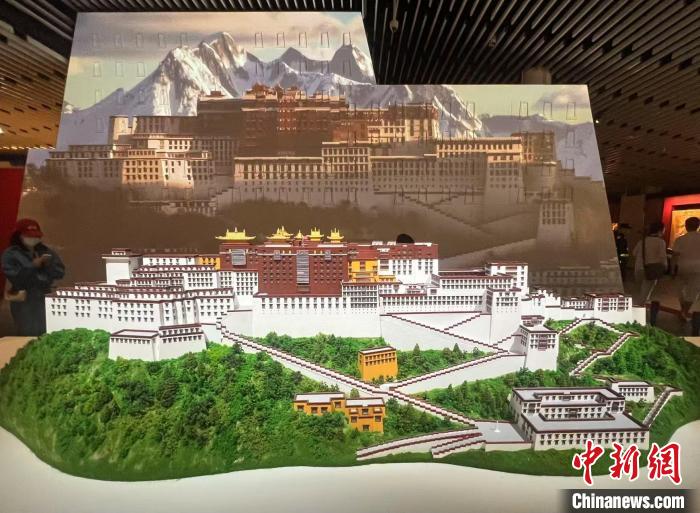 圖為展廳入口處呈現(xiàn)的按比例縮小的布達拉宮模型。記者 岳依桐 攝