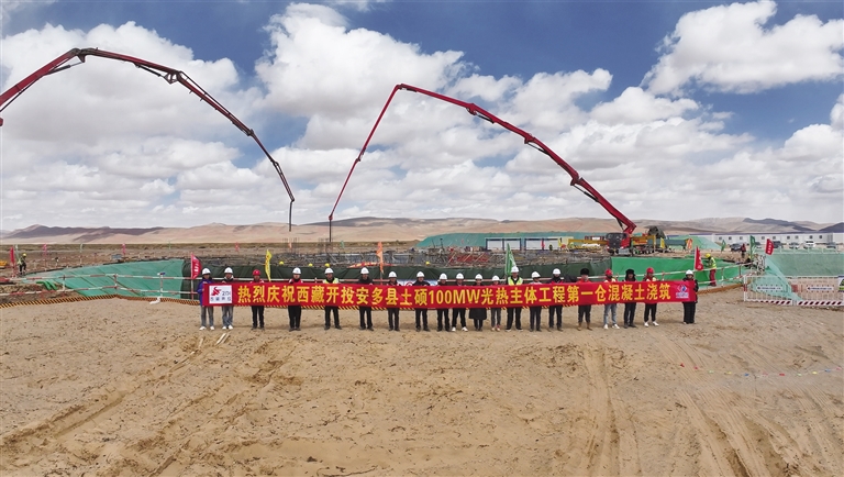 安多土碩光熱光伏一體化項(xiàng)目聚光集熱塔基礎(chǔ)完成第一倉(cāng)混凝土澆筑。圖由趙苑余提供