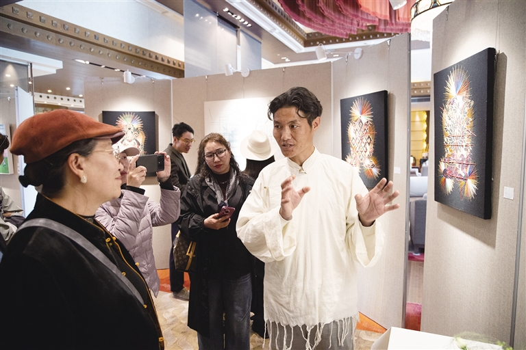 開幕儀式上,亞東縣委常務(wù)副書記、常務(wù)副縣長(zhǎng),上海市第十批援藏干部人才亞東聯(lián)絡(luò)小組組長(zhǎng)李夏陽在致辭中表示,三十年間,在多批援藏干部的不懈努力與無私奉獻(xiàn)下,亞東縣在穩(wěn)定、發(fā)展、生態(tài)、強(qiáng)邊等各項(xiàng)工作上都取得了顯著成效,對(duì)本次參展藝術(shù)家們?yōu)閬問|縣文化傳播的傾情助力,致以誠摯的感謝。藝術(shù)家索喃次仁表示,未來將持續(xù)致力于將傳統(tǒng)技藝與現(xiàn)代審美融合,讓古老手工藝煥發(fā)新生,以藝術(shù)賦能助力鄉(xiāng)村振興。