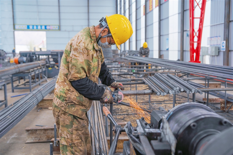 拉薩高新大橋鋼筋加工現(xiàn)場。