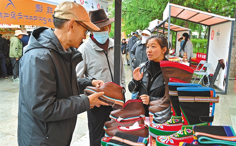 近日,“雪域古城·圣地拉薩”文化旅游節(jié)非遺主題活動在拉薩宗角祿康公園內開展,現(xiàn)場人潮涌動。非遺藏戲演員身著華服,以高亢唱腔演繹《朗薩雯蚌》選段,觀眾圍坐沉浸于雪域藝術魅力。非遺展銷區(qū)陳列著木雕、牛皮制品等傳統(tǒng)手工藝品。活動全面展現(xiàn)了非遺保護傳承與利用的新進展和新成效。