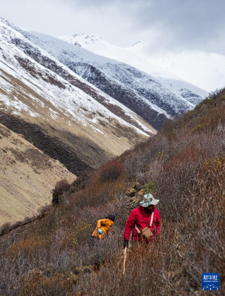 在那曲市索縣西昌鄉(xiāng),牧民在尋覓蟲草(5月18日攝)。新華社記者 丁增尼達(dá) 攝