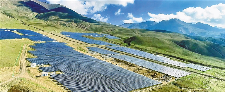 在措美縣城東、西兩側(cè)的山坡上,一排排光伏發(fā)電板在陽(yáng)光的照射下熠熠生輝。措美縣全年日照強(qiáng)、降水少,年均日照時(shí)數(shù)超2800小時(shí),擁有豐富的太陽(yáng)能資源。近年來(lái),措美縣大力發(fā)展光伏發(fā)電產(chǎn)業(yè),實(shí)現(xiàn)綠色低碳發(fā)展,讓高原變身“綠電藍(lán)?!?。截至目前,措美縣共建設(shè)有光伏電站3座,總裝機(jī)容量達(dá)到70MW。自2017年第一座光伏電站并網(wǎng)發(fā)電至2024年底,累計(jì)發(fā)電量超3.4億千瓦時(shí),相當(dāng)于節(jié)約標(biāo)準(zhǔn)煤約4.2萬(wàn)噸,減少二氧化碳排放約33.9萬(wàn)噸。