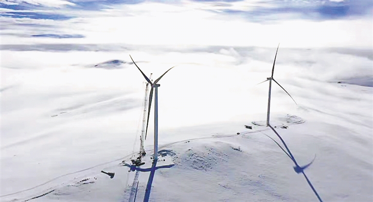 圖為中國(guó)三峽集團(tuán)在哲古草原投資興建的風(fēng)電場(chǎng)。措美縣融媒體中心供圖