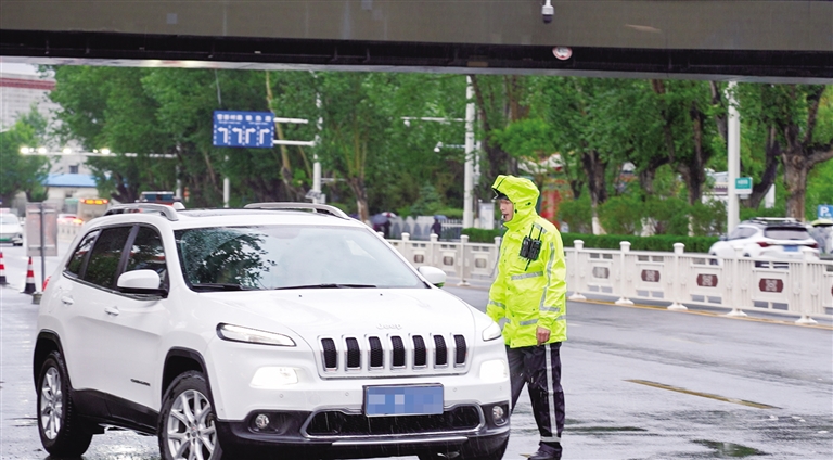 現(xiàn)場(chǎng)指揮送考生車輛。圖由拉薩交警提供