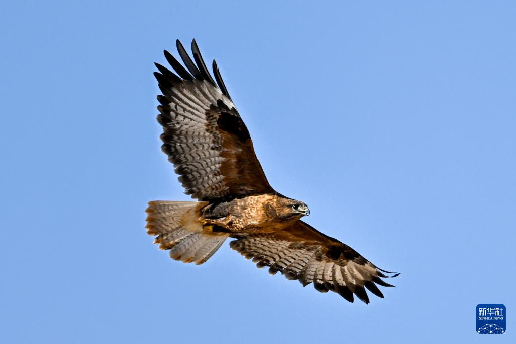 一只大鵟在羌塘草原展翅飛翔(6月8日攝)。新華社記者 旦增尼瑪曲珠 攝