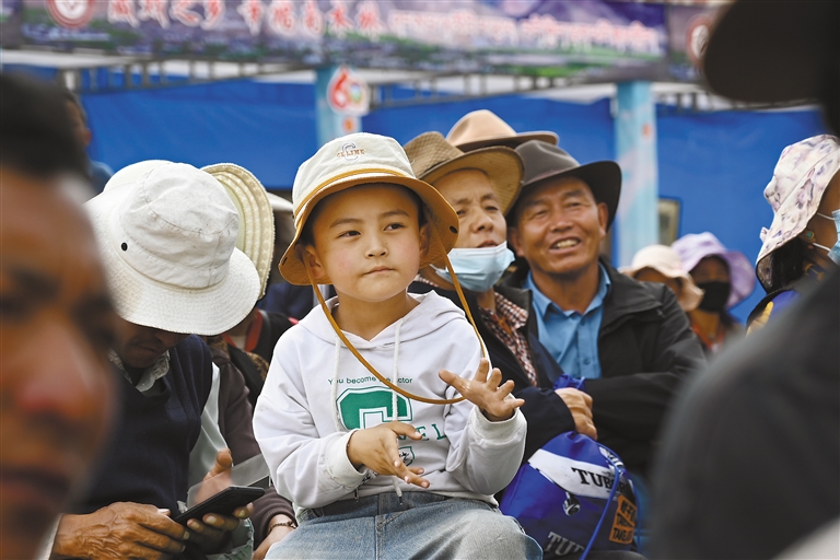 活動(dòng)伊始,非遺展演便引爆全場(chǎng)。宏大敘事與細(xì)膩情感交織的格薩爾說(shuō)唱,極具地方特色的諧欽、果諧等傳統(tǒng)歌舞,贏得觀眾陣陣熱烈掌聲。其中,由南木林縣甲措鄉(xiāng)果拉村少兒藏戲隊(duì)帶來(lái)的藏戲《溫巴頓》片段深受觀眾的喜愛(ài)。