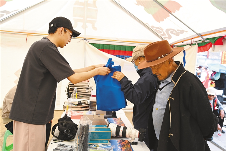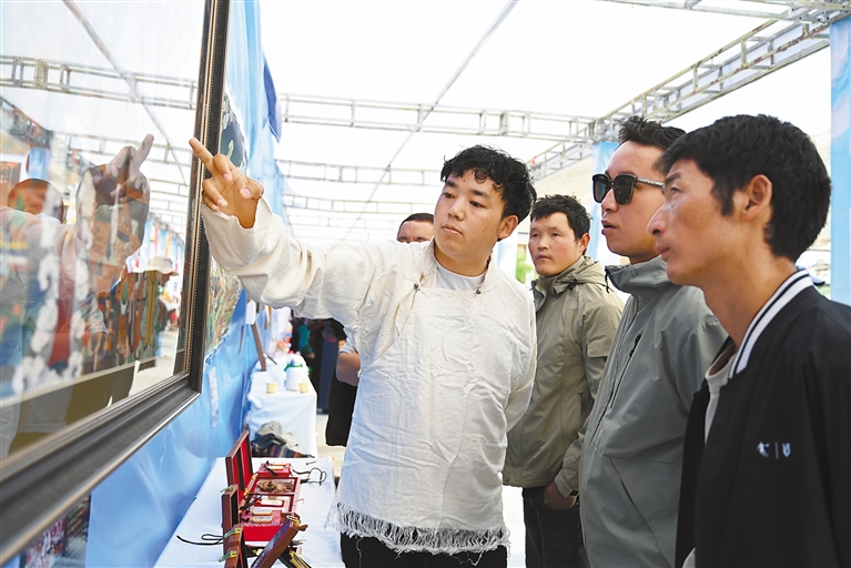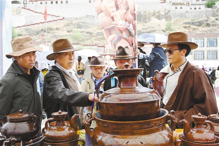 在欣賞視聽(tīng)盛宴的同時(shí),國(guó)家級(jí)非遺項(xiàng)目江孜卡墊織造技藝、自治區(qū)級(jí)非遺項(xiàng)目牛村陶器制作技藝、市級(jí)非遺項(xiàng)目恰哇編織技藝等50個(gè)非遺項(xiàng)目,以及民族手工業(yè)產(chǎn)品、南木林縣縣級(jí)非遺產(chǎn)品集中展覽展銷,備受消費(fèi)者青睞。各非遺產(chǎn)品展銷點(diǎn)收入不斷、訂單不斷,經(jīng)初步統(tǒng)計(jì),活動(dòng)現(xiàn)場(chǎng)非遺產(chǎn)品銷售總額達(dá)45萬(wàn)余元。