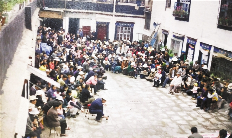 “這張照片里穿著藏裝、舉著選票的,就是我!”86歲的德吉卓嘎指著展板上的老照片說。泛黃的照片,記錄著上世紀90年代居委會換屆選舉的場景。如今,走進陽光灑滿的院落,在光影連接之間回看往昔,真切感受到歷史的變遷。