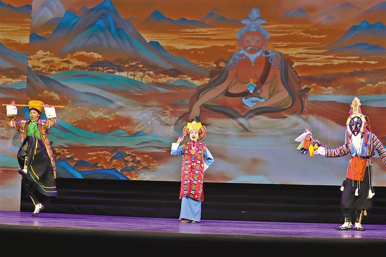 值此西藏自治區(qū)成立60周年、自治區(qū)群藝館(區(qū)非遺保護中心)“少兒藏戲(唱腔)”公益培訓(xùn)十周年之際,首部少兒版《文成公主》藏戲折子戲——《雪域童心頌文成》成功上演。17名平均年齡13歲的雪域少年,以赤誠之心重現(xiàn)漢藏和親歷史,讓人類非物質(zhì)文化遺產(chǎn)在新時代綻放璀璨光芒,奏響民族團結(jié)的時代強音。