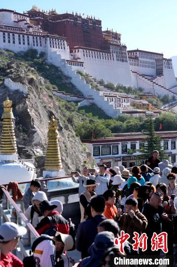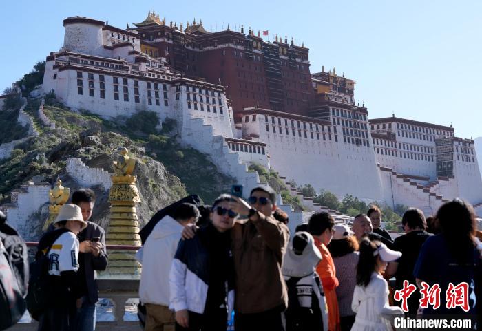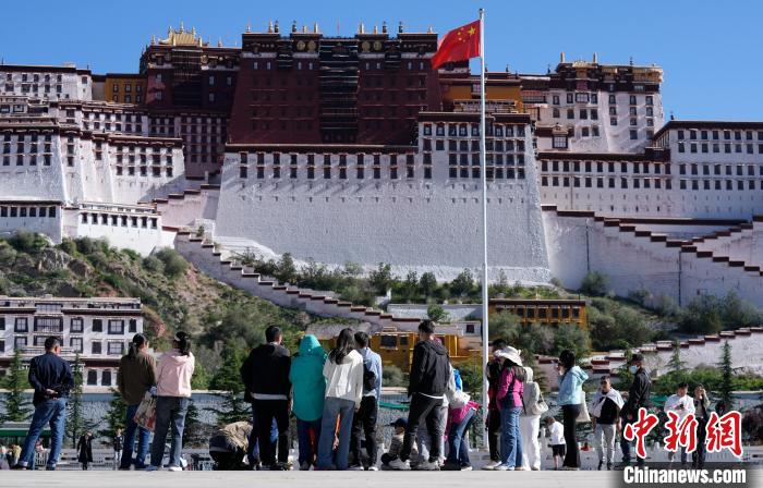 圖為游客在布達拉宮廣場拍照。中新社記者 李林 攝