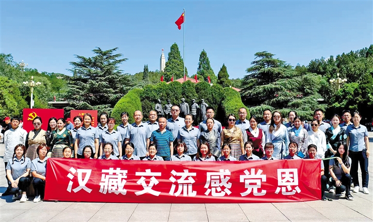 札達縣教師交流團與石家莊市61中黨支部在西柏坡舉行黨日活動。河北省第十批援藏工作隊供圖