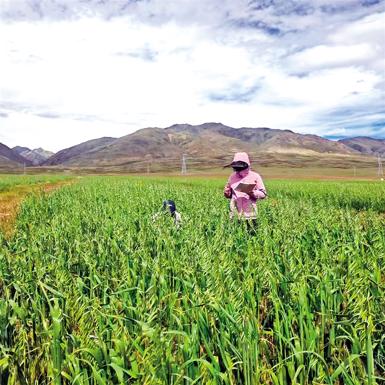 在陜西省援助擴建的阿里地區(qū)飼草技術推廣中心試驗基地,技術人員正在工作。陜西省第十批援藏工作隊供圖