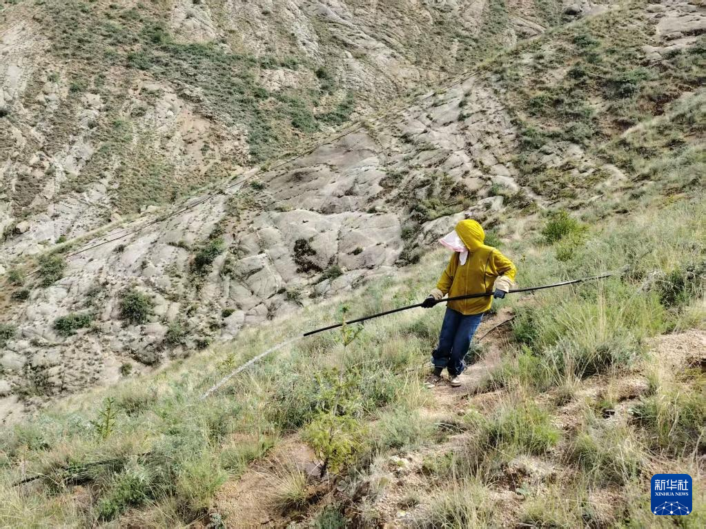 4年間,她的工作很單調(diào),挖坑、種樹、澆水、養(yǎng)護(hù);她的工作很辛苦,坑要挖在陡峭貧瘠的山體上,土要從遠(yuǎn)方搬運(yùn)過來,水最初只能靠人舉著管子一點點澆……寒來暑往,日復(fù)一日。