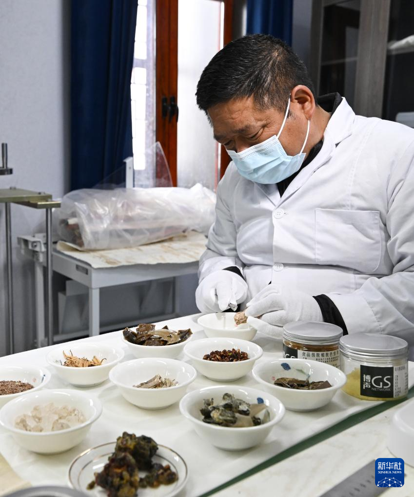 布達(dá)拉宮貝葉經(jīng)實(shí)驗性修復(fù)小組實(shí)驗室工作人員對用于貝葉修復(fù)的粘合劑原料進(jìn)行加工(5月25日攝)。新華社記者 李賀 攝?
