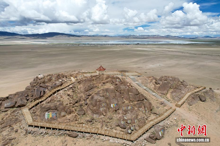 7月20日,在西藏阿里地區(qū)革吉縣鹽湖鄉(xiāng)拍攝的巖畫遺址公園,該遺址公園是“鹽羊古道”全域旅游景點之一。一千多年前,阿里地區(qū)有50多家駐扎的鹽幫,將自然鹽用羊馱牛背邊放牧邊運輸?shù)姆绞剑\送到普蘭、日喀則、印度、尼泊爾等地,并用以物易物的方式換回青稞、磚茶、布料等日常生活所需的物品,從而孕育了遠(yuǎn)負(fù)盛名的“鹽羊古道”傳奇。近年來,當(dāng)?shù)亻_辦粗鹽巴加工廠、打造“鹽羊古道”旅游品牌等方式,使千年“鹽羊古道”煥發(fā)新生機。(無人機照片)中新社記者 張祥毅 攝