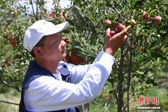 蘋(píng)果種植不僅“鎖”住了風(fēng)沙,更帶來(lái)了“甜日子”。次仁卓嘎和眾多村民一樣,在基地就近務(wù)工獲得穩(wěn)定收入。李世銀介紹,僅附近的朗塞嶺村,幾乎每戶都有人在基地務(wù)工,每戶年增收約5萬(wàn)元(人民幣,下同)至6萬(wàn)元。該基地于2020年建設(shè),現(xiàn)種植已達(dá)8200畝。2023年首銷(xiāo)4000畝蘋(píng)果,實(shí)現(xiàn)銷(xiāo)售額276萬(wàn)元;2024年銷(xiāo)售額躍升至385萬(wàn)元。產(chǎn)品不僅在西藏區(qū)內(nèi)及國(guó)內(nèi)其他省市銷(xiāo)售,去年還進(jìn)入尼泊爾市場(chǎng)?!颁N(xiāo)路完全不用愁?!崩钍楞y信心滿滿。