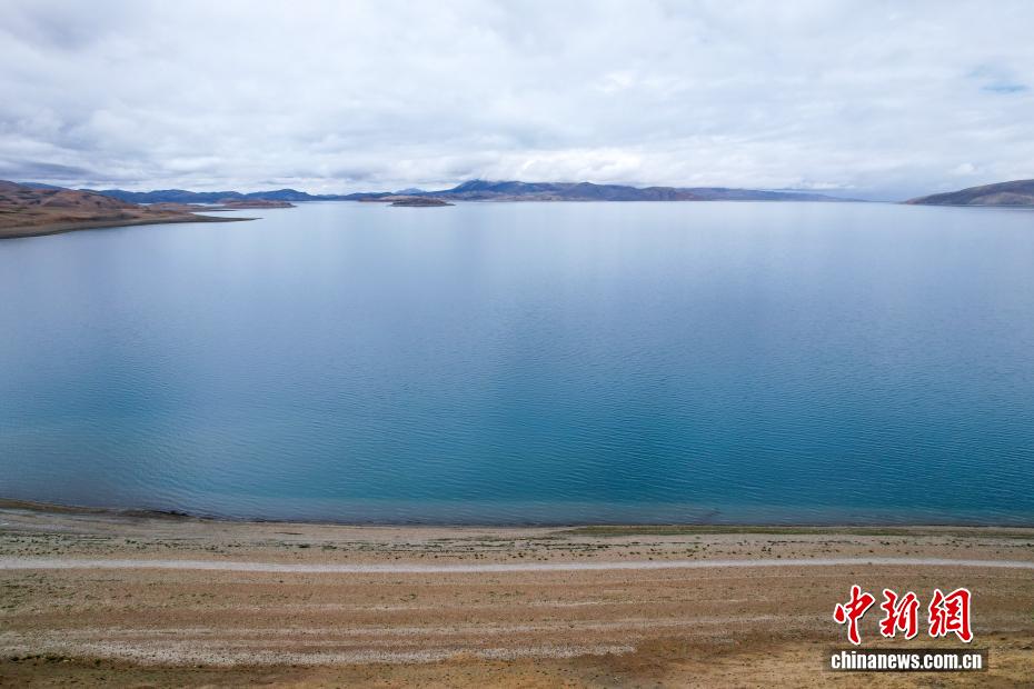 7月22日,航拍拉昂錯(cuò)夏日風(fēng)光?,斉杂哄e(cuò)與拉昂錯(cuò)位于西藏阿里地區(qū)普蘭縣境內(nèi),兩湖僅有一堤之隔,卻擁有不同的地理特征和咸淡水之分,因而分別被譽(yù)為“圣湖”與“鬼湖”。(無人機(jī)照片)中新社記者 張祥毅 攝