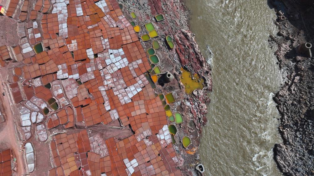 瀾滄江畔的千年鹽田。井鹽曬制技藝被列入國家級非物質文化遺產名錄。新華社記者 黨黎 攝