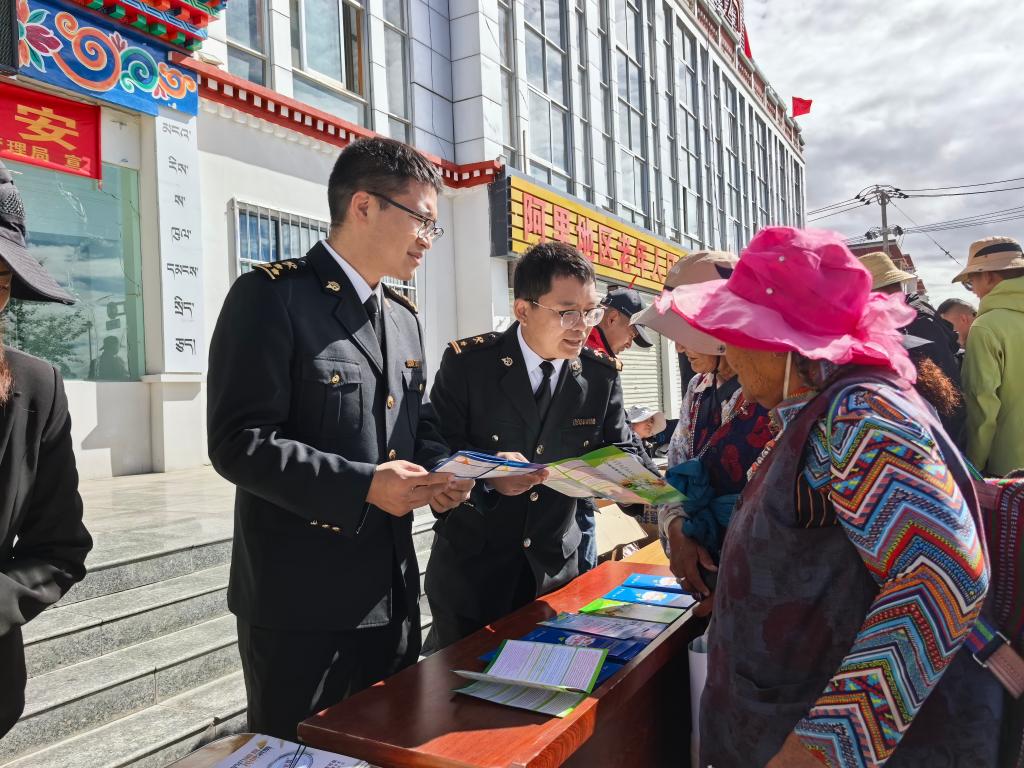 2025年7月23日,獅泉河海關(guān)開展食品安全宣傳活動(dòng),守護(hù)百姓“舌尖上的安全”。(獅泉河海關(guān)供圖)