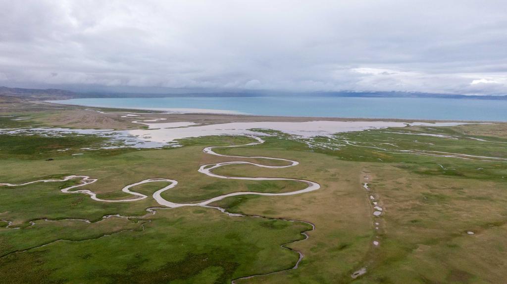 2025年7月22日拍攝的瑪旁雍錯(cuò)濕地一景(無人機(jī)照片)。新華社記者 旦增尼瑪曲珠 攝