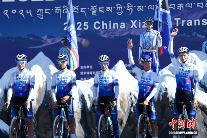 8月6日,2025中國西藏第六屆跨喜馬拉雅國際公路自行車極限賽在布達(dá)拉宮廣場(chǎng)開幕。賽事升級(jí)為國際自盟男子精英2.1級(jí)職業(yè)系列賽后首次舉辦,賽程總距離約420.58公里。據(jù)悉,比賽吸引了來自中國、西班牙等國家的17支自行車隊(duì)共100余人參賽。圖為成都DYC洲際隊(duì)入場(chǎng)。中新社記者 貢嘎來松 攝