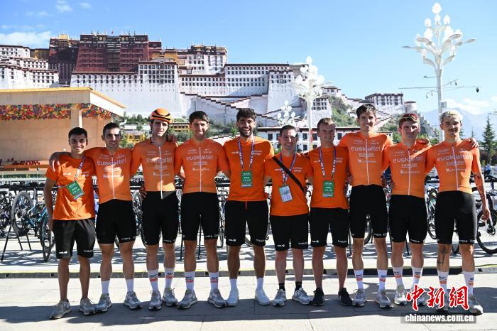 8月6日,2025中國西藏第六屆跨喜馬拉雅國際公路自行車極限賽在布達(dá)拉宮廣場(chǎng)開幕。賽事升級(jí)為國際自盟男子精英2.1級(jí)職業(yè)系列賽后首次舉辦,賽程總距離約420.58公里。據(jù)悉,比賽吸引了來自中國、西班牙等國家的17支自行車隊(duì)共100余人參賽。圖為巴斯克電信職業(yè)隊(duì)入場(chǎng)。中新社記者 貢嘎來松 攝