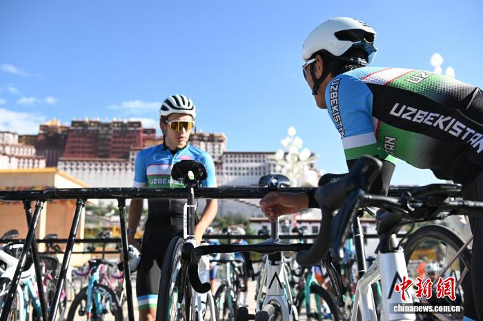 8月6日,2025中國西藏第六屆跨喜馬拉雅國際公路自行車極限賽在布達(dá)拉宮廣場(chǎng)開幕。賽事升級(jí)為國際自盟男子精英2.1級(jí)職業(yè)系列賽后首次舉辦,賽程總距離約420.58公里。據(jù)悉,比賽吸引了來自中國、西班牙等國家的17支自行車隊(duì)共100余人參賽。圖為烏茲別克斯坦國家隊(duì)入場(chǎng)。中新社記者 貢嘎來松 攝