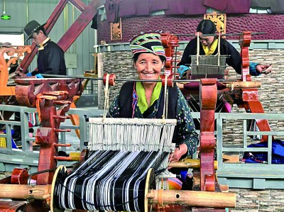 西藏山南市乃東民族嘩嘰手工編織專業(yè)合作社內(nèi),村民們正在編織純手工的澤帖爾。光明日報記者 李丹陽攝/光明圖片