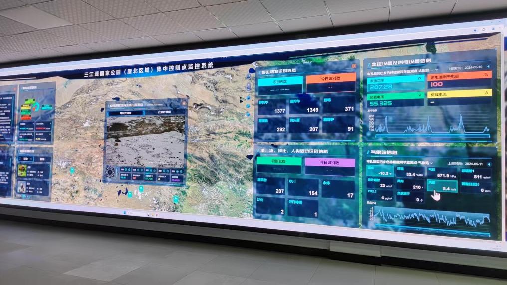在西藏那曲市三江源國家公園(唐北區(qū)域)監(jiān)測中心,巨大的電子屏幕上交替呈現著無人區(qū)不同角落的生動畫面:藏羚羊群在冰川腳下悠閑覓食;藏野驢在草原上緩步前行;雪豹的身影在某處巖壁間一閃而過。每一幅畫面都配有精準的物種識別數據和地理坐標,將生態(tài)狀況轉化為清晰可讀的數字信息。