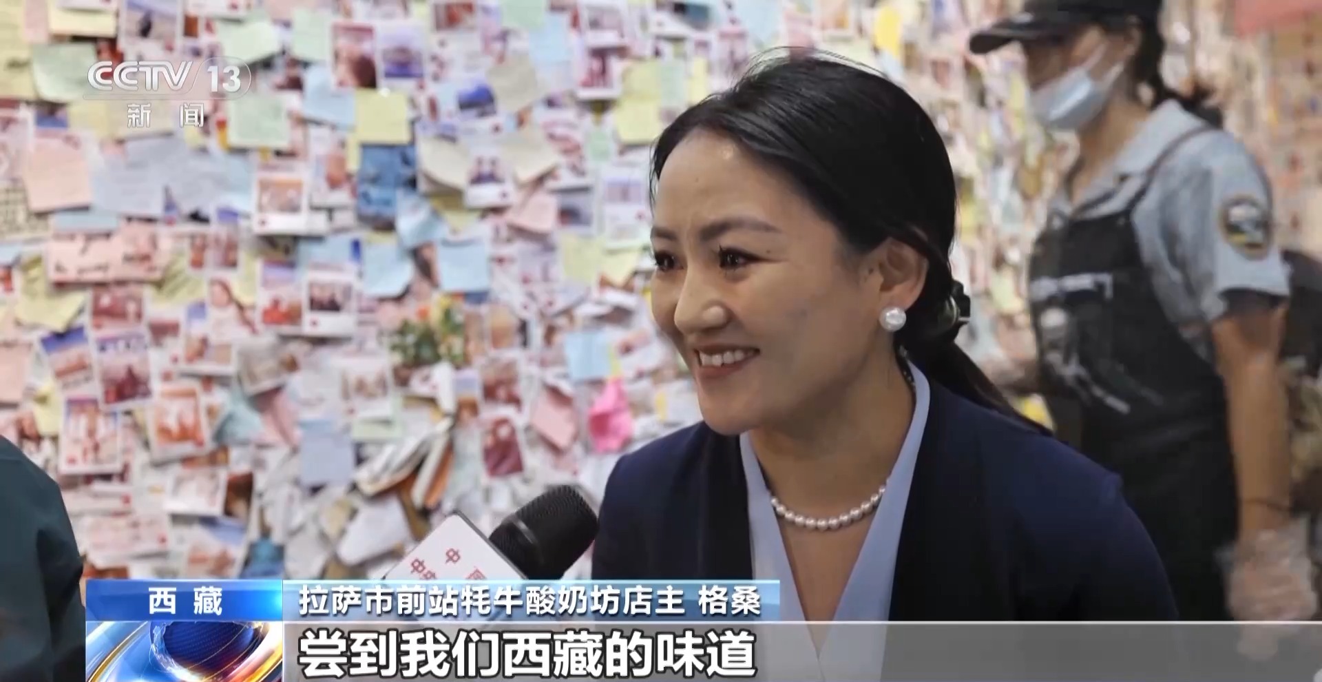 拉薩市前站牦牛酸奶坊店主 格桑:牦牛奶不能夠超過三個(gè)小時(shí),超過三個(gè)小時(shí)就會(huì)壞。路好了之后,我們就可以到更遠(yuǎn)的地方去采購(gòu)更新鮮的牦牛奶,包括蛋糕上面的青稞粉是日喀則的,人參果是從那曲運(yùn)過來的,現(xiàn)在交通便利了,所以我們可以用最地道的食材做最地道的酸奶,也能讓天南地北的游客嘗到我們西藏的味道。