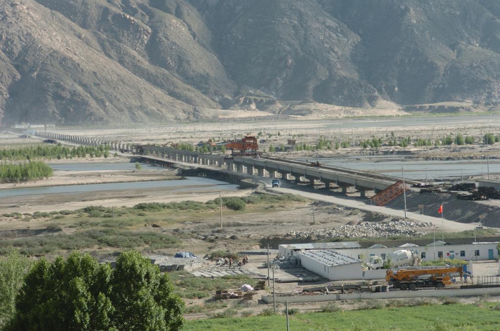 這是2004年6月7日拍攝的建設中的跨雅魯藏布江特大橋。新華社記者 土登 攝