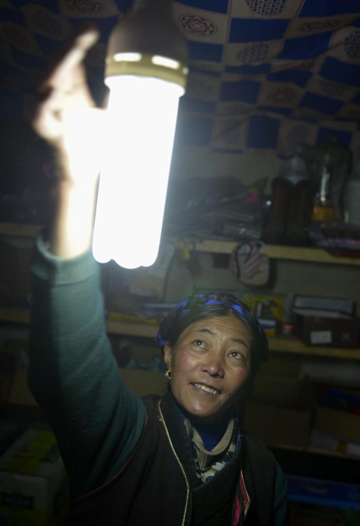 2013年6月7日,西藏浪卡子縣普瑪江塘鄉(xiāng)牧民在家里使用太陽能照明設備。新華社記者 普布扎西 攝