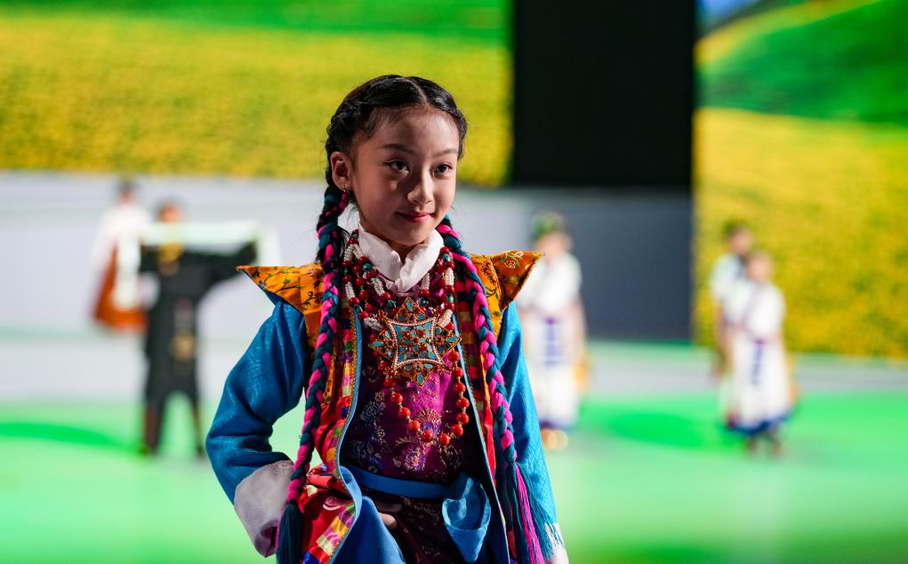 2025年1月5日,首屆西藏“衣脈相承”服飾文化周上小朋友展示藏式童裝。新華社記者 晉美多吉 攝